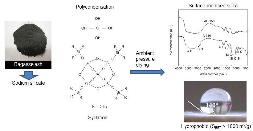 Keywords: bagasse ash; silica aerogel; ambient pressure drying; surface modification; silylation.