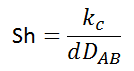 Koefisien perpindahan massa konvektif km didefinisikan dengan cara yang sama seperti koefisien perpindahan panas konvektif sebagai: