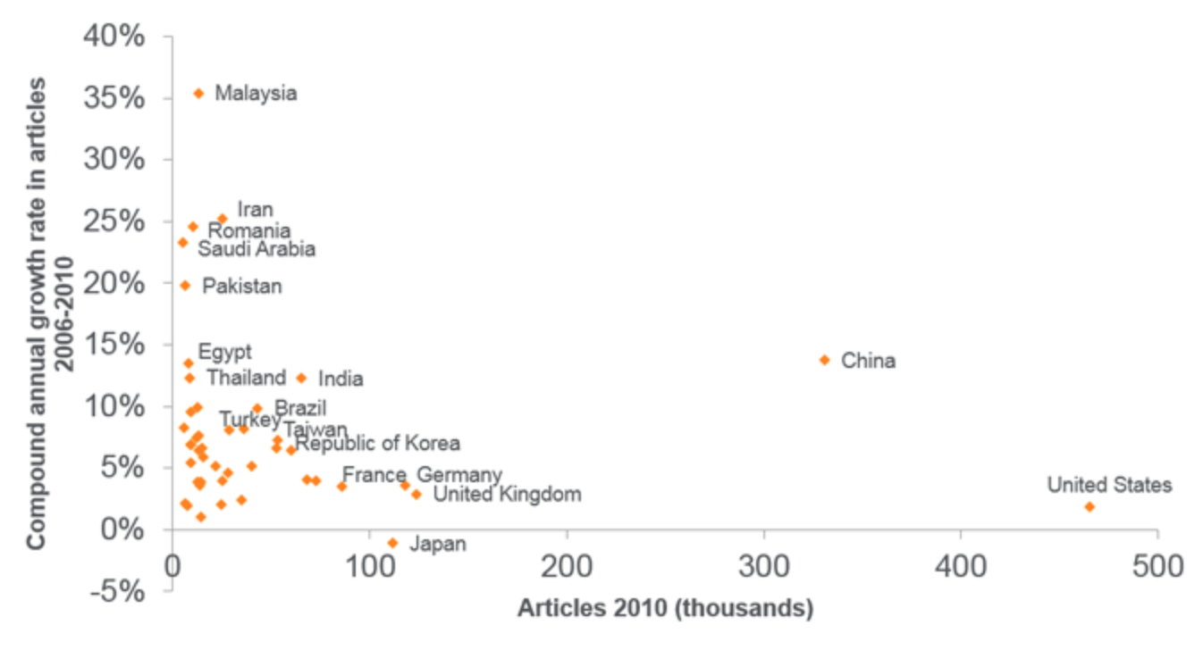 Disebabkan oleh investasi oleh penerbit dan pustakawan, ada pertumbuhan yang nyata dalam akses kepada penelitian, yang telah mengakibatkan peningkatan pengiriman artikel. Gambar 4 menunjukkan bahwa dalam istilah pengiriman artikel, beberapa negara yang pertumbuhannya paling cepat adalah dari kawasan negara berkembang.