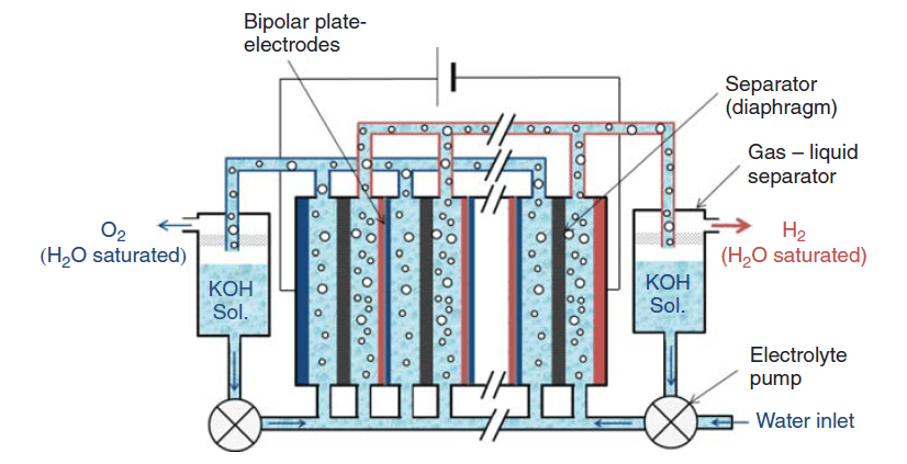 Gambar 4. Diagram skema sel elektrolisa air alkalin bipolar.