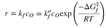 dimana co adalah konsentrasi spesies yang dioksidasi. Penurunan dalam beda energi Gibbs DGf* (baca ‘Delta Gf) berkaitan dengan energi aktivasi yang lebih rendah dan akan menyebabkan kecepatan reaksi maju meningkat. Persamaan serupa dapat dituliskan untuk reaksi balik.