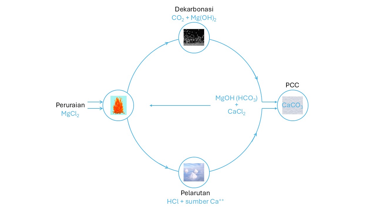 - Presipitasi: Ca(OH)2 + CO2 –> CaCO3 (PCC) + H2O