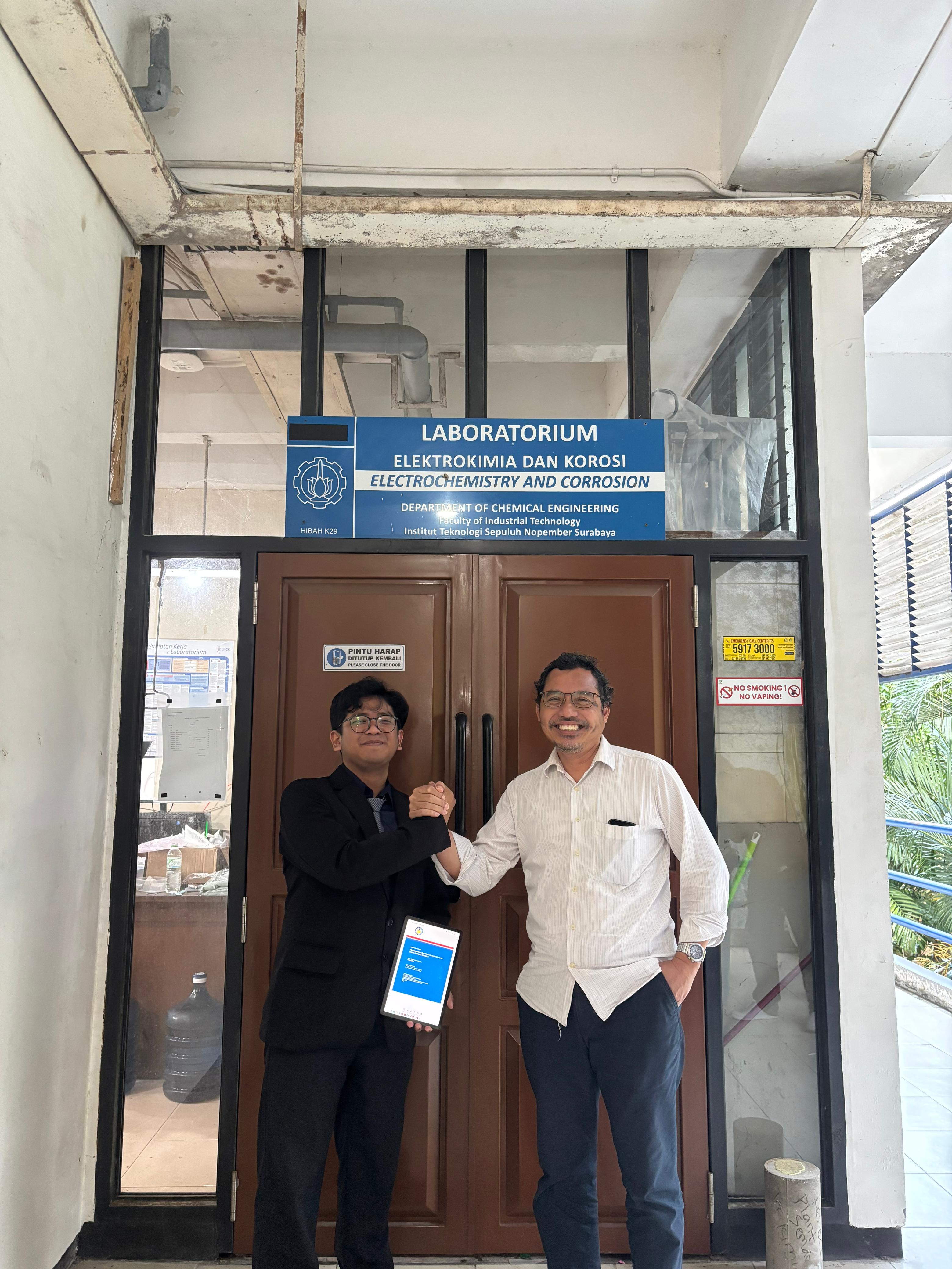 Kemarin lusa dan kemarin (9/7 dan 10/7) dua mahasiswa program Pendidikan Magister menuju Doktor untuk Sarjana Unggul (PMDSU) yang bergabung di Lab Elektrokimia dan Korosi Departemen Teknik Kimia ITS berhasil menyelesaikan program doktornya. Mereka adalah Dr. Riski Agung Nata Utama (Doktor ke-107 Departemen Teknik Kimia ITS) dan Dr. Sekar Tri Wulan Amelia (Doktor ke-108 Departemen Teknik Kimia ITS).