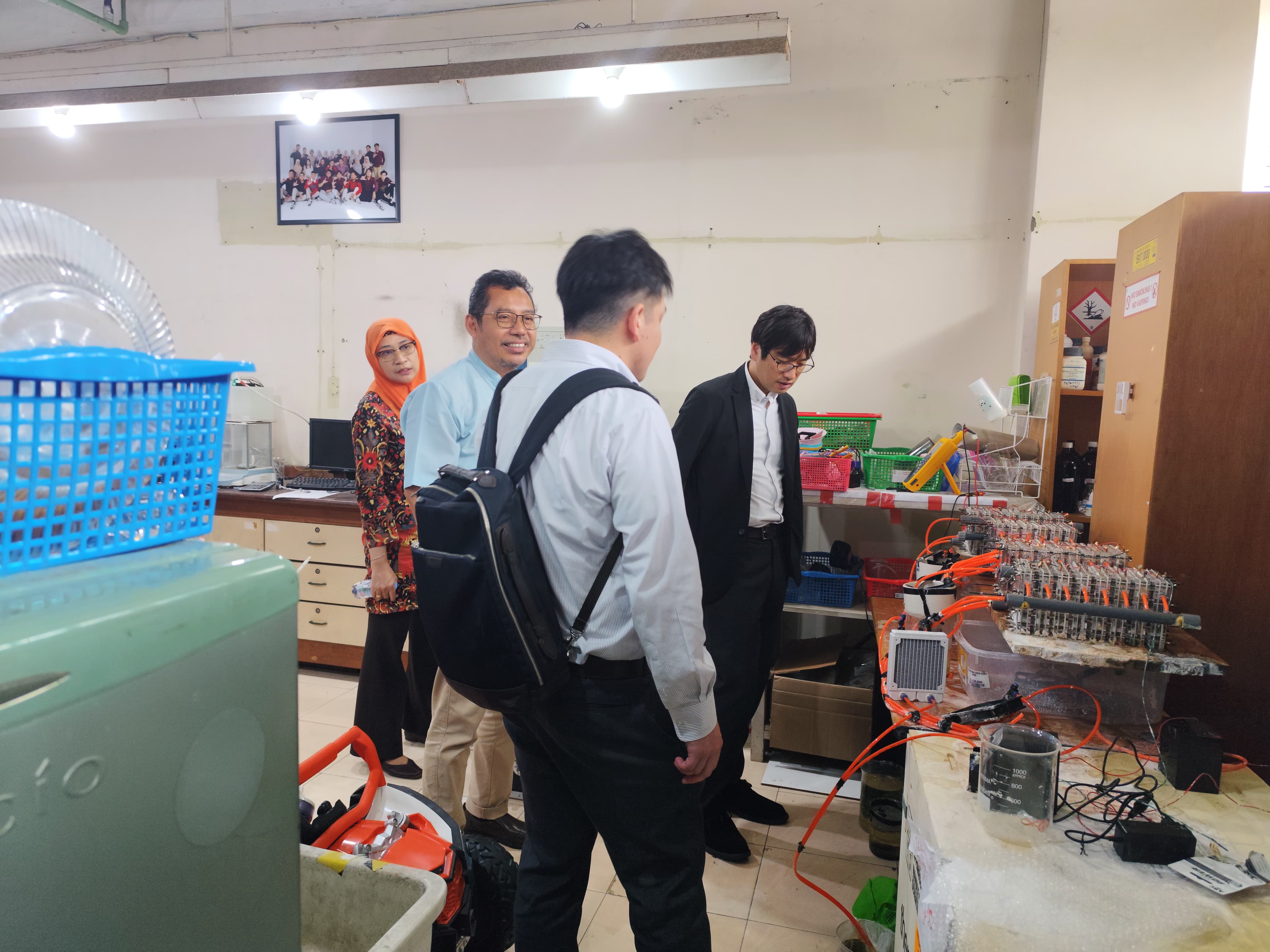 Dalam kesempatan yang sama, Prof. Heru Setyawan, selaku kepala Lab, turut memaparkan mengenai riset yang tengah dikembangkan di labnya. Fokus utama Lab Elektrokimia & Korosi yaitu pengembangan komponen baterai logam-udara berbasis limbah pertanian (sabut kelapa dan TKKS). Limbah pertanian tersebut diolah menjadi hidrogel selulosa untuk aplikasi sebagai separator pada baterai.
