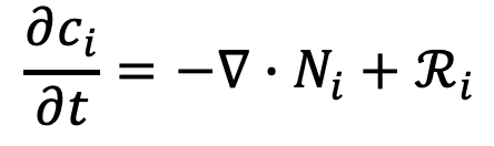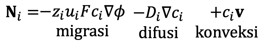 Fluks dalam sistem elektrokimia digambarkan oleh persamaan Nernst-Planck: